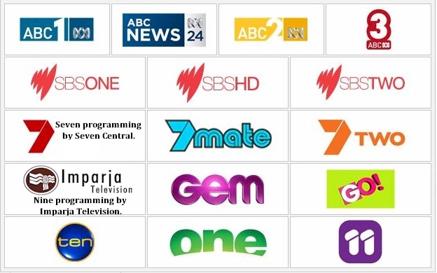 This includes standard definition programming broadcast by Southern Cross Media and Imparja, sourced from the Seven, Nine and Ten commercial networks and their new digital channels GO!, 7TWO and ONEHD, as well as all of the ABC and SBS channels, including ABC2, ABC3 and SBS TWO.